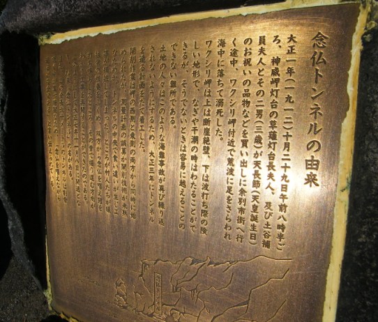 ※写真はクリックで拡大します 神威(カムイ)とはアイヌ語で「神」を意味する。 この付近は古くから海上交通の難所として知られており、 神罰を恐れて安政3年(1856年)までは女人禁制の地であった。 それに関しては源義経に関する伝説が残っており、 義経を慕って身を投げた日高の首長の娘チャレンカの嫉妬心が、 女を乗せた船を転覆させたことから、岬一帯が女人禁制となった。 チヤレンカはやがて岩と化して神威岩となったと言い伝えられている。 また、日露戦争時にはロシア艦隊の来寇に備えて監視所が設けられていた。 (ウィキペディアより引用) 岬までは駐車場から徒歩で行きます 行った日は今まで感じたことのないほどの強風でした 真夏は岬まで行くと汗だくになりますよ~ 途中、花が咲いてたり、眺めは絶景です 到着!!! なんとも言えない絶景 身を投げて石になったといわれております 行く価値ありますよ~ 戻り道で見つけたのがこちら 念仏トンネル 神威岬近くのワクシリ岬にある全長60メートルのトンネル。 1918年(大正7年)11月8日開通。現在は立入禁止となっているが、 以前は神威岬に行くにはこのトンネルを通る必要があった。 1912年(大正元年)、 灯台守の家族がワクシリ岬付近で荒波にさらわれ 死亡するという事故が起きたのを契機に、1914年(大正3年)に着工した。 両側から手掘りで掘り進むうちに食い違いが生じ、 工事が中断したが、村人たちが念仏を唱えて鐘を打ち鳴らしたところ、 その音で掘り進む方向が分かり工事が再開できたと言われている。 このため、途中で2度折れ曲がっており、内部は真っ暗である。 念仏を唱えながら通ると安全であると言い伝えられている。 (ウィキペディアより引用) PR 応援してくださった方は「おきてがみ」クリックして 足跡残してくださいね! 後ほど応援に伺います(。´∀`)ノ